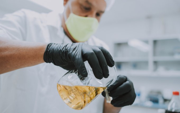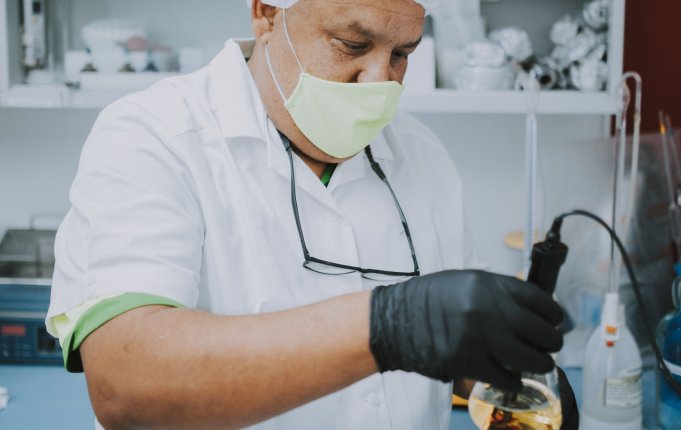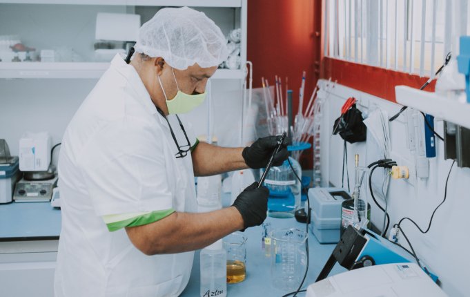 In the microbiology lab, each batch sample is checked under the microscope to confirm the absence of contaminations.